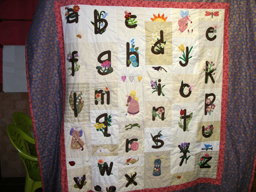 Sorpresa.........................he reaparecido, jajajja, en dos dias dos entradas....estoy que me salgo!!!!! Os muestro el quilt del abecedario, ya terminadito, acolchadito y empaquetadito para navidad......que los dias ya sabeis que se vannnnnnnnnnnnnnnnnnn y ya sabeis mucho patch y muchas pizzas!!!!!!!!!!!!!!!!!!!!!!!